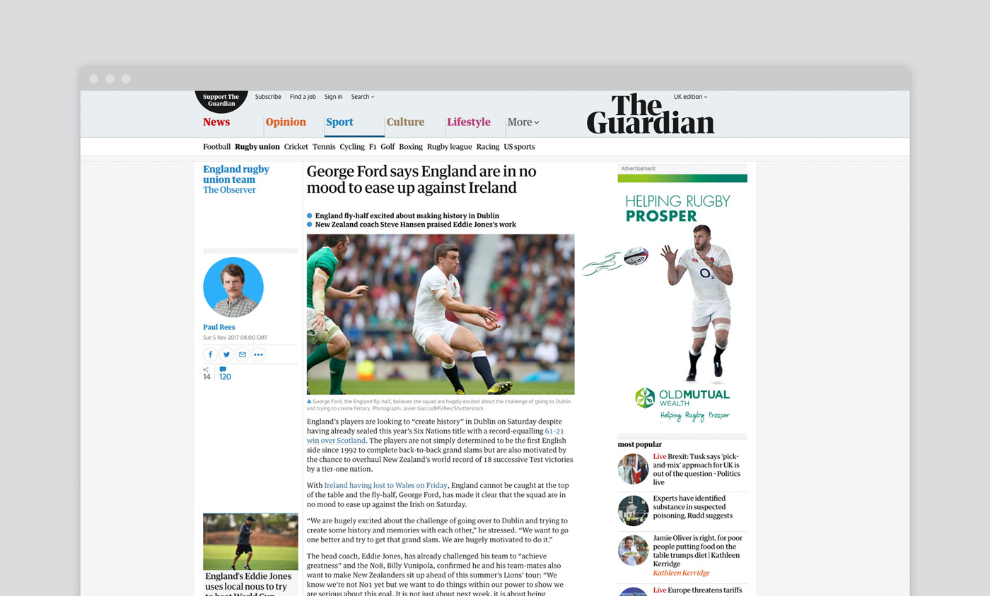 To celebrate its new sponsorship of England Rugby, Old Mutual Wealth wanted a film which would be played on match days both in and around Twickenham. Focusing on the company’s commitment to supporting rugby from grassroots through to elite, the creative sees imaginative childlike doodles enhancing a phase of play, connecting both professional and young players.